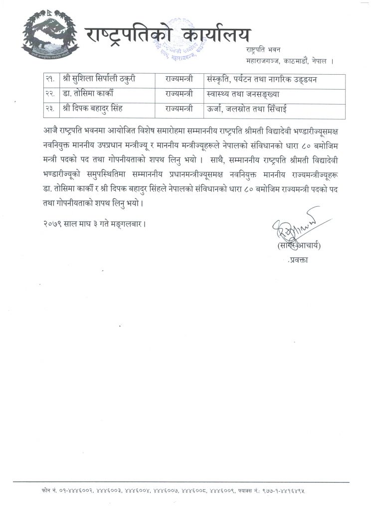 साथै आयोगका तर्फबाट कार्यवाहक प्रमुख निर्वाचन आयुक्त रामप्रसाद भण्डारीले निर्वाचनका सन्दर्भमा हालसम्म भएको तयारी, निर्वाचन सामग्रीको छपाई, जनशक्ति व्यवस्थापनलगायतका बारेमा प्रधानमन्त्री कार्कीलाई शुक्रबार जानकारी गराउनुभएको थियो ।