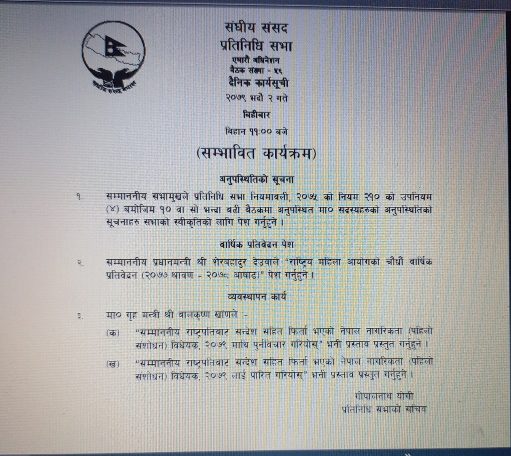 फिर्ता गरेकाे नागरिकता विधेयक भोलि नै पारितकाे तयारी